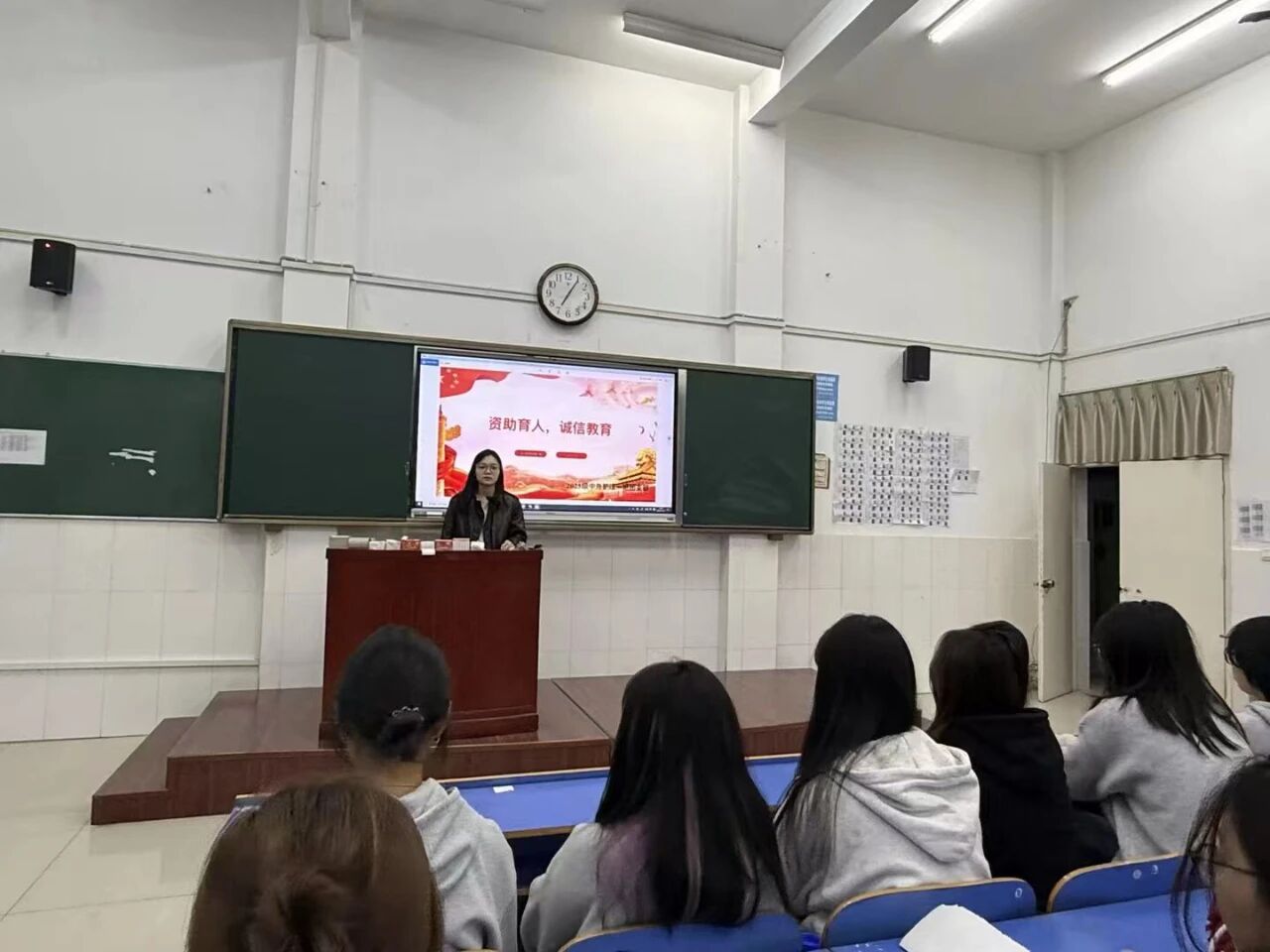 各班辅导员详细介绍了国家资助政策的内容、申请条件与办理流程,阐述了政策的重要意义,使同学们切实感受到国家对家庭经济困难学生的关怀与支持。结合真实案例,辅导员强调了诚信对于资助工作中的关键作用,引导同学们树立正确的价值观和诚信意识。同学们积极参与讨论,踊跃分享对资助政策的理解及对诚信的感悟,部分同学讲述了身边受助同学励志进取的故事,激发了大家奋发向上的动力;也有同学表示,将坚守诚信,以实际行动感恩回馈社会。
