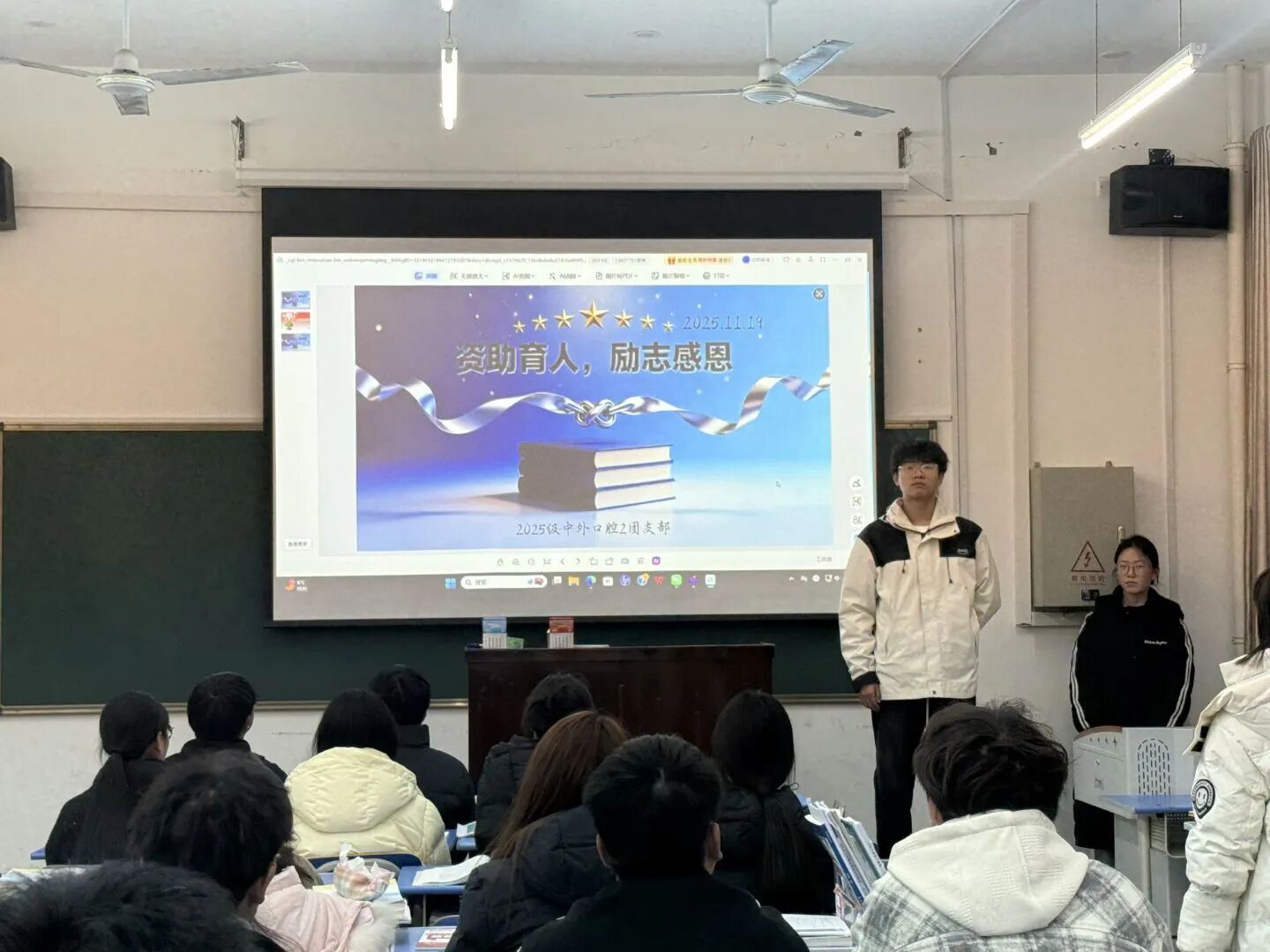 11月20日,外事国教党总支学管支部组织各班开展“资助育人,励志教育”主题班会。