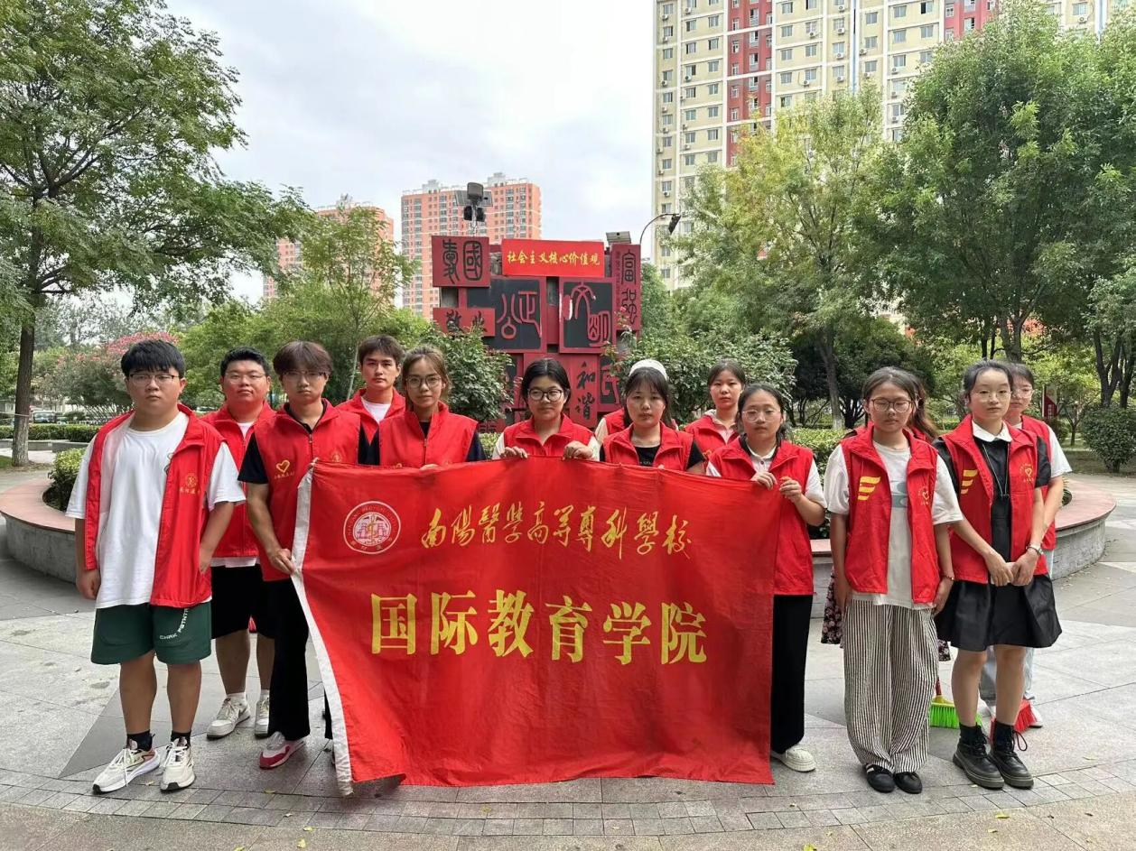 9月18日,外事国教党总支学管支部组织志愿者在我校北门旁如意苑居民公园开展义务清扫志愿服务活动。
