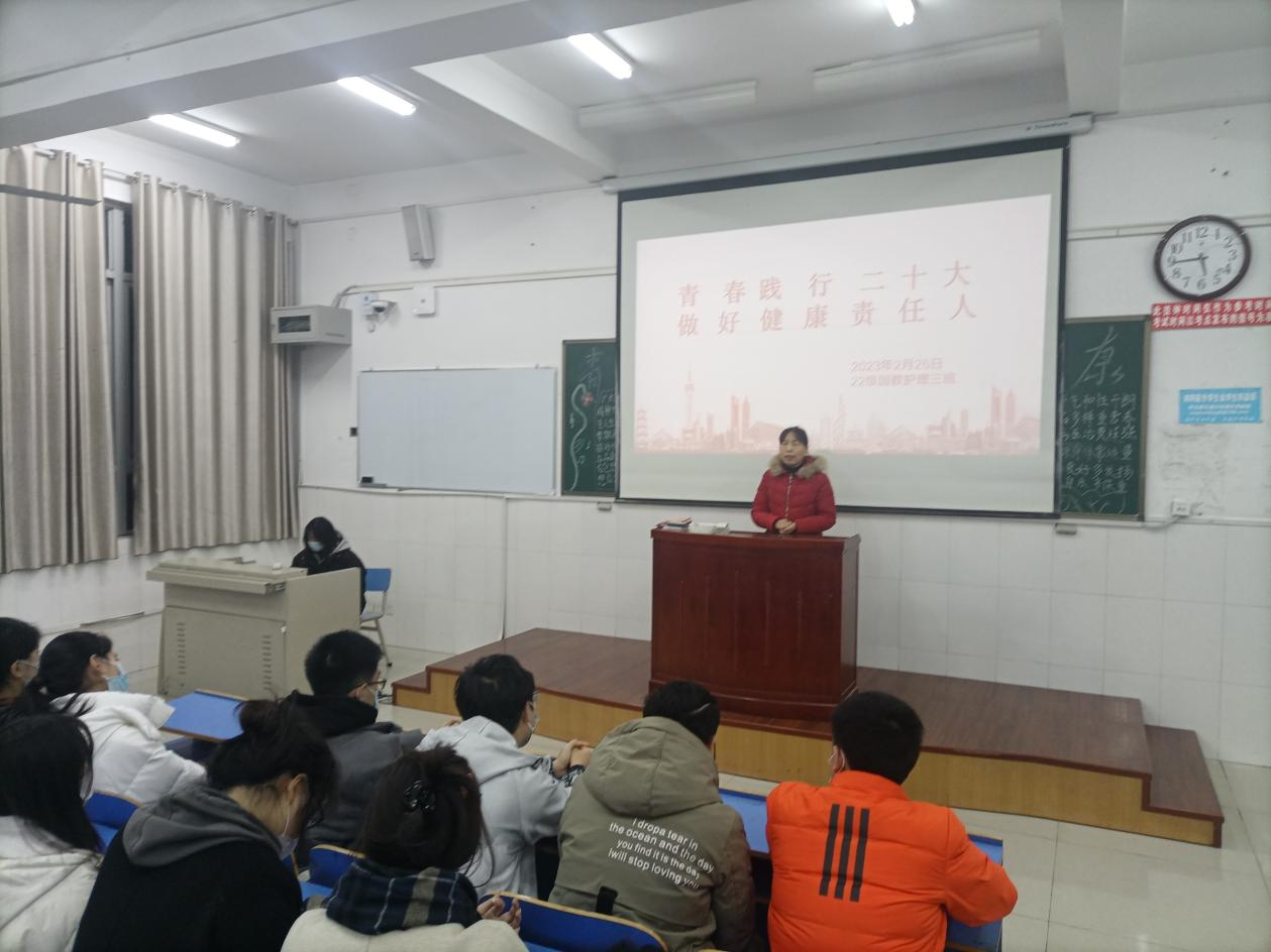 各班辅导员通过板报、PPT等形式展开,让同学们熟知二十大精神的内涵,开展一系列宣讲活动,以“青春践行二十大,做好健康责任人”为主题,紧密结合党的二十大精神,从党的二十大主题、召开党的二十大的意义、“五个牢牢把握”等三个方面系统阐释了党的二十大报告的核心要义、丰富内涵以及内在逻辑,解读了新时代坚持和发展中国特色社会主义的一系列重大理论和实践问题,希望同学们认真学习党的二十大精神,以党的二十大为载体,提升内在动力,奋力书写新时代学校高质量发展的新篇章。