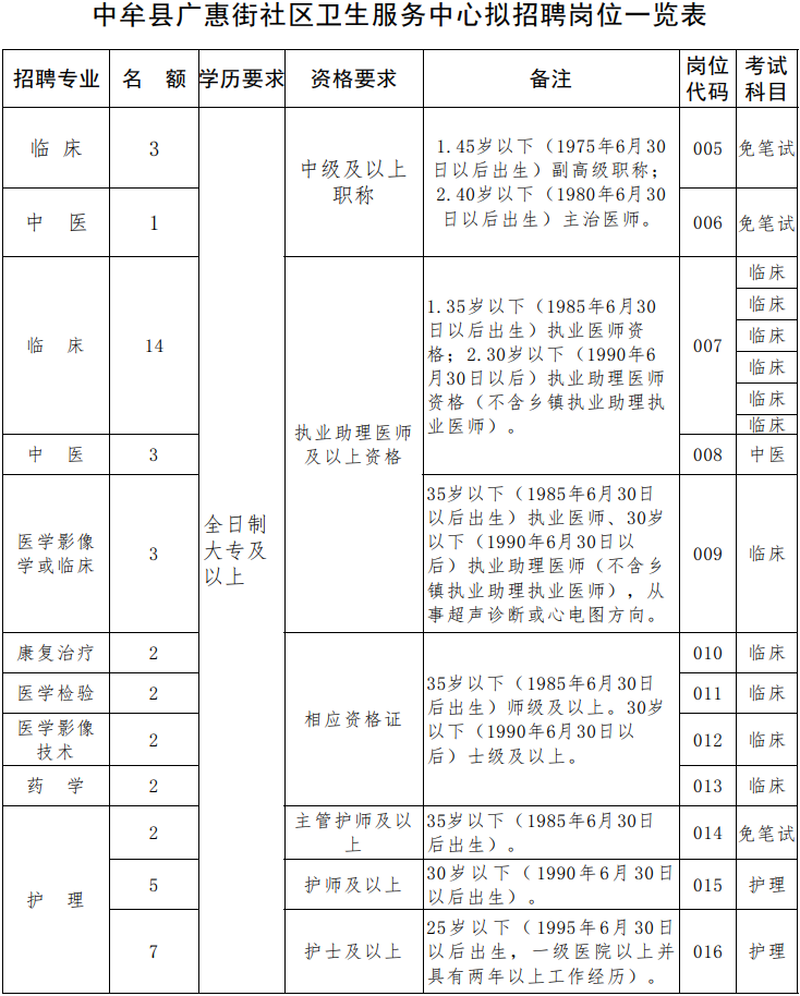 为进一步提高全县医疗卫生服务能力,为全县卫生健康事业高质量发展提供充足的人才储备和强大的专业技术支持,按照《郑州市人民政府关于印发郑州市事业单位新进人员管理办法的通知》(郑政〔2017〕36号),经县委、县政府同意,中牟县疾病预防控制中心拟招聘5人(岗位设置见附件1),中牟县广惠街社区卫生服务中心拟招聘46人(岗位设置见附件2),现公告如下: