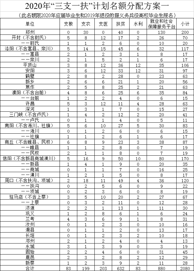 附件:1、2020年“三支一扶”计划分配方案一.doc(限2020年应届毕业生和2019年退役的服义务兵役高校毕业生报名)