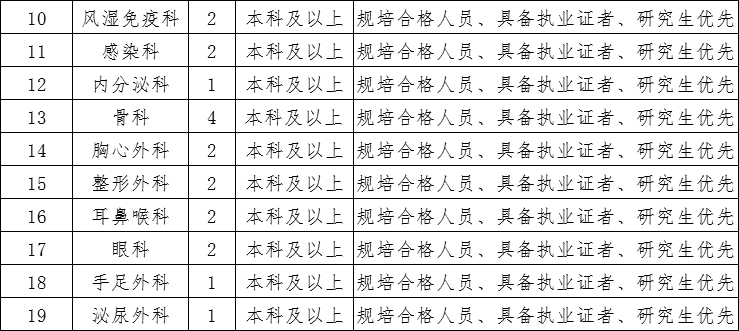 2. 往届:本科及以上学历,取得主治医师资格或住院医师规范化培训合格,经科室试用合格。