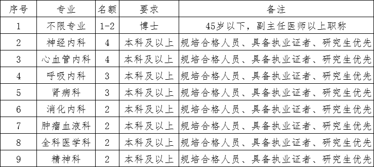 1. 45岁以下,博士学历,副主任医师以上职称。