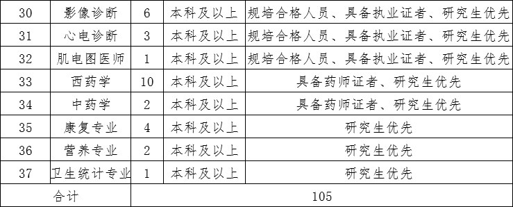 2. 本科学历往届毕业生提供毕业证、学位证、执业资格证;聘用后,应届本科临床医学专业3年内需取得执业证书;否则在规定时限不能取得执业资格者给予辞退。