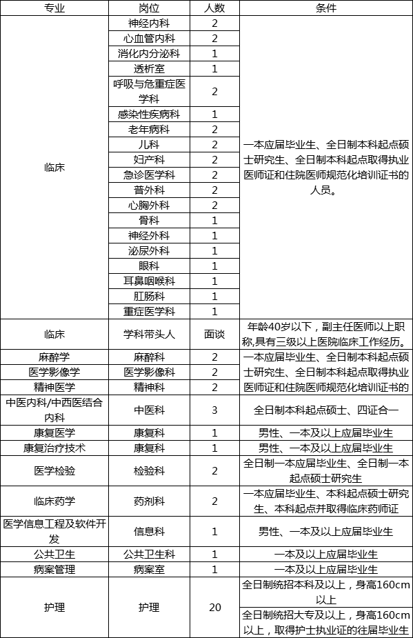 另:报名学科带头人和硕士研究生以上学历、取得执业医师资格证、住院医师规范化培训证书的人员可随时预约面试。