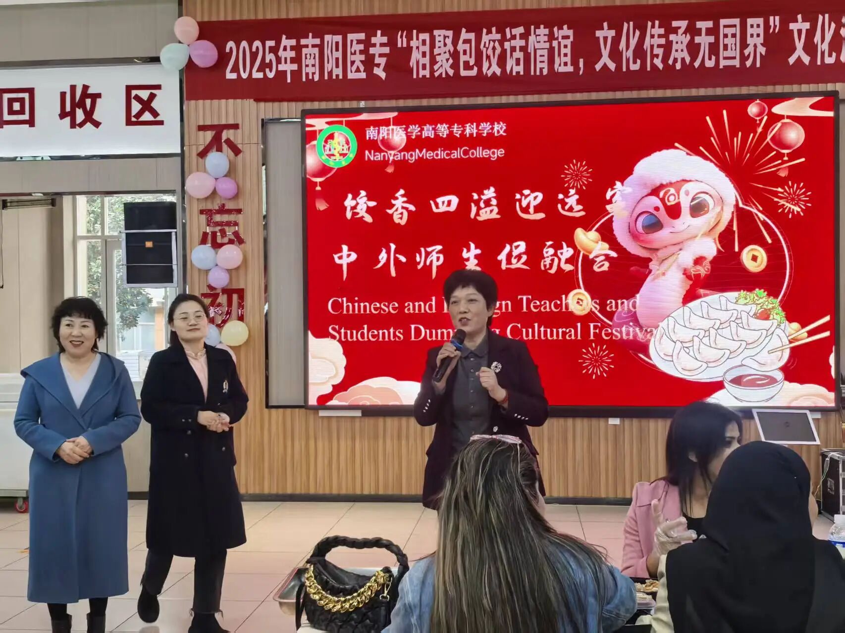 11月12日,我院在仲景西区育贤斋餐厅一楼举办“相聚包饺话情谊,文化传承无国界”活动,校长范真,纪委书记刘金云及全体来华外籍教师与留学生,学院师生代表参与活动。