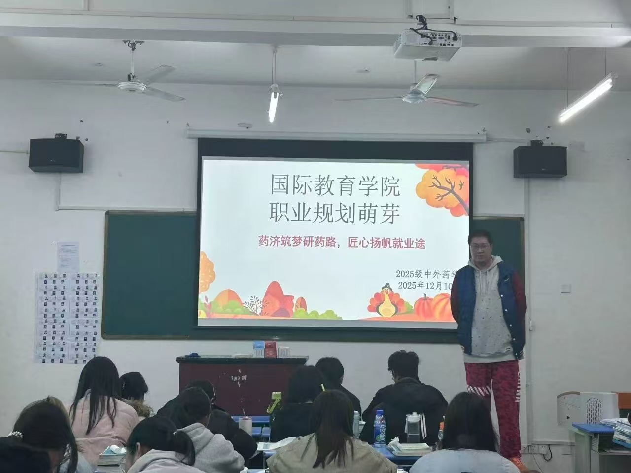 10月22日,国际教育学院在三号教学楼524教室开展中外药学专业就业指导宣讲。