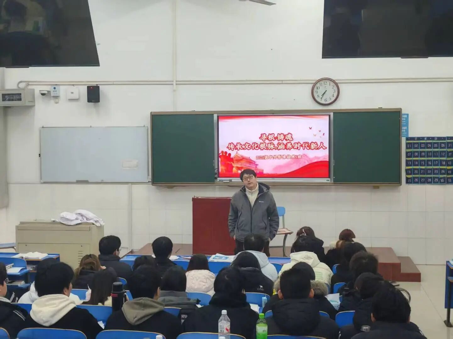 各班辅导员通过组织观看文化传承纪录片,展现了中华优秀传统文化在当代的传承实践。在随后的讲解环节中,辅导员围绕中华优秀传统文化的核心内涵、历史脉络与当代价值展开讲解,系统阐释了文化传承与创新之间的辩证关系。他们特别指出,文化根脉是民族发展的精神基石,培育时代新人不仅要传承文化精髓,更要在创新中激发文化活力。同学们纷纷表示,将自觉传承中华优秀传统文化,努力成长为有理想、有道德、有文化、有纪律的时代新人,以实际行动为弘扬中华文化贡献力量。