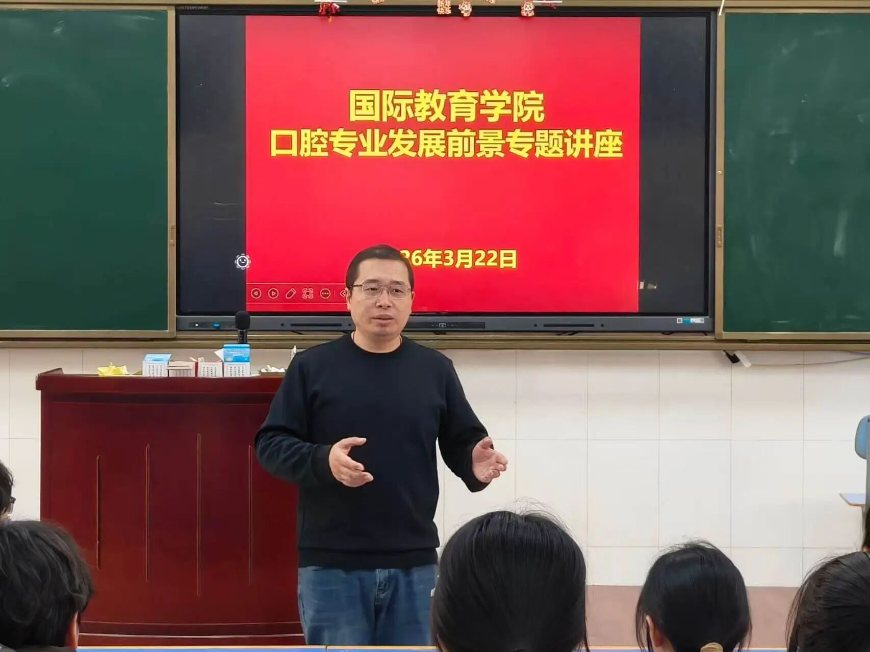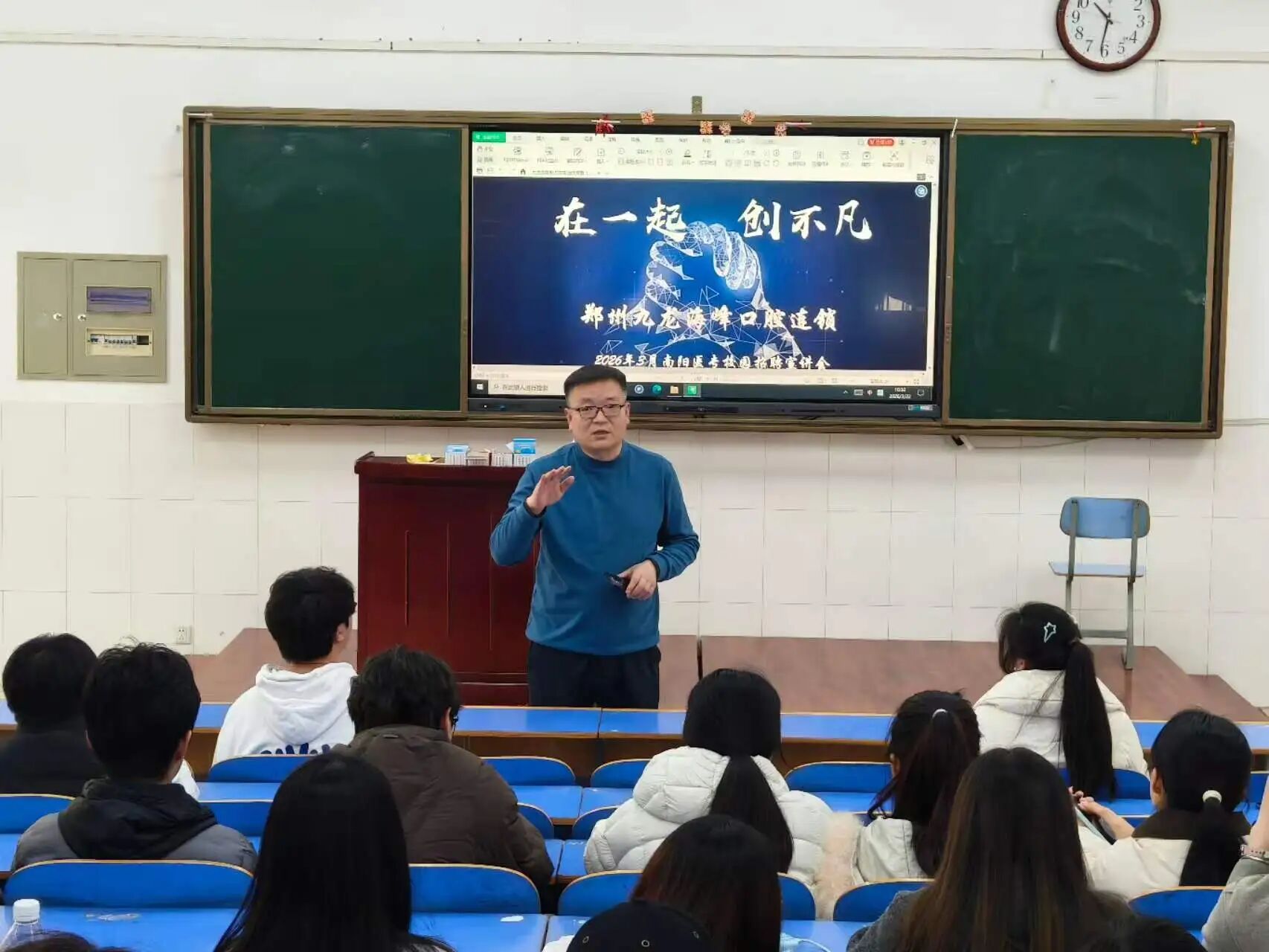 2026年3月22日,国际教育学院在三号教学楼 502 教室举办郑州九龙海峰口腔医疗有限公司专场招聘会。