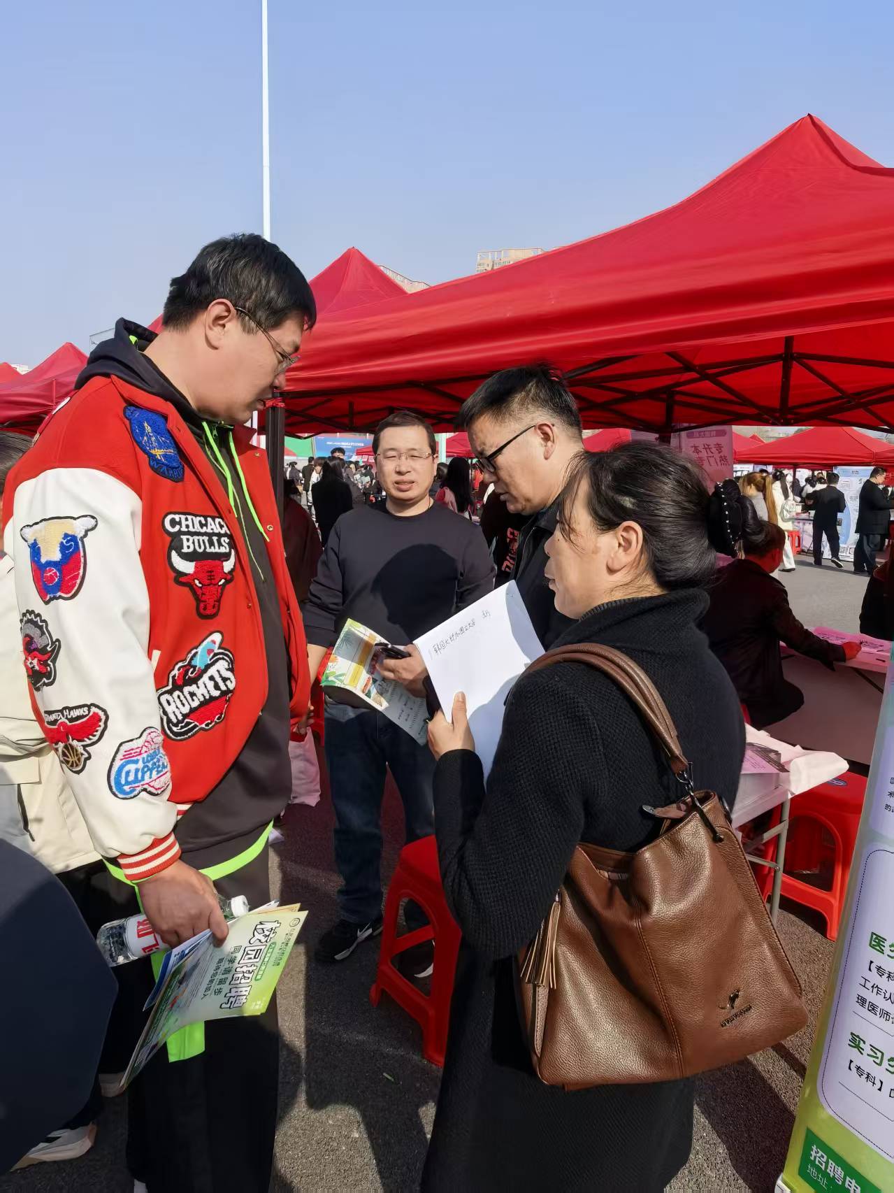 双选会现场,学院领导与辅导员齐聚会场,与毕业生亲切交流,悉心传授简历制作、面试技巧等求职经验,强调就业的重要性,引导学生树立正确的就业观与择业观,鼓励大家主动把握机遇、积极投递简历,以自信从容的姿态迎接职场挑战。与此同时,学院领导主动深入用人单位展位,与招聘负责人沟通交流,全面了解单位发展状况、岗位需求及行业动态,广泛听取对学校人才培养、专业设置、实习实践等方面的意见建议,为进一步深化校企合作、提升人才培养针对性奠定了良好基础。会场中,毕业生们携带简历穿梭于各展位之间,凭借扎实的专业素养和良好的综合能力,主动与用人单位沟通交流,充分展现自身优势,尽显新时代医学学子的青春朝气与专业底气。由学院师生组成的志愿者团队同步开展服务,为参会同学提供政策咨询、岗位推荐、后勤保障等支持,用实际行动为毕业生求职保驾护航。